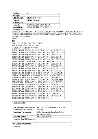 (For previous Incidents at LCD or LCL - use DARIS to extend