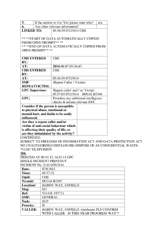 GPC Supervisor: 'Repeat caller' and / or 'Victim'.