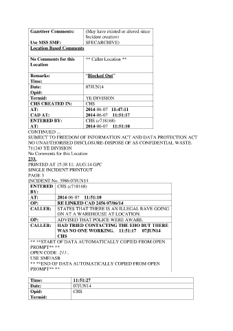 CALLER: STATES THAT THERE IS AN ILLEGAL RAVE GOING