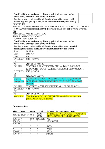 Are they a repeat caller and/or victim of anti-social behaviour which is