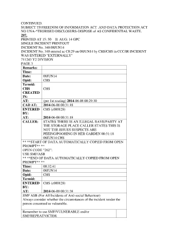 INCIDENT No. 340 entered ac C0:29 on 08JUN14 by CHS/CHS in CCC/IR INCIDENT
