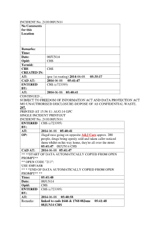 Remarks: linked to cads 1646 & 1768 08June 05:41:48
