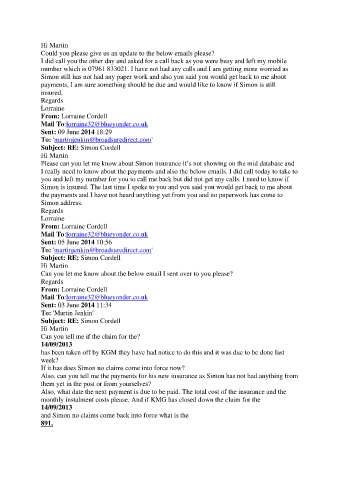Also, can you tell me the payments for his new insurance as Simon has not had anything from