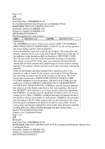setting up for a 'Rave'. CORDELL produced insurance documents but due to