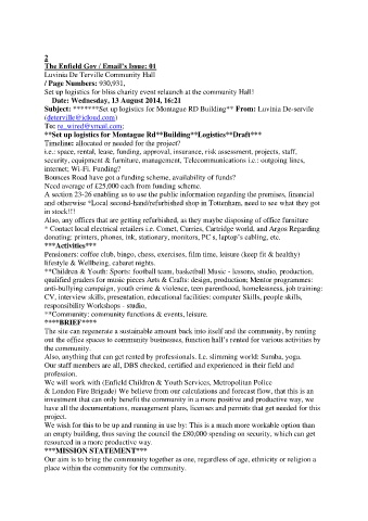 **Set up logistics for Montague Rd**Building**Logistics**Draft***