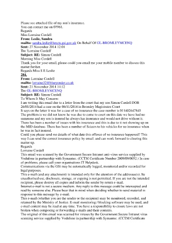 I am writing this email due to a letter from the court that my son Simon Cordell DOB