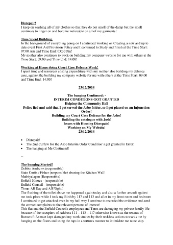 This flat and the Enfield Councils employees and Tents are damaging my private family life