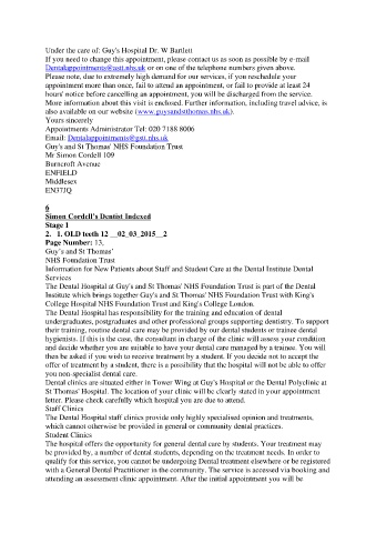 Under the care of: Guy's Hospital Dr. W Bartlett