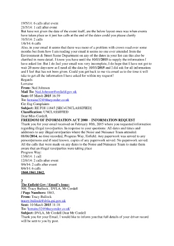 regarding illegal raves/parties. In response to your questions: All dates and times and