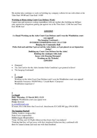 Working on the Asbo Court Case Defence and I won the Wimbledon court case appeal!