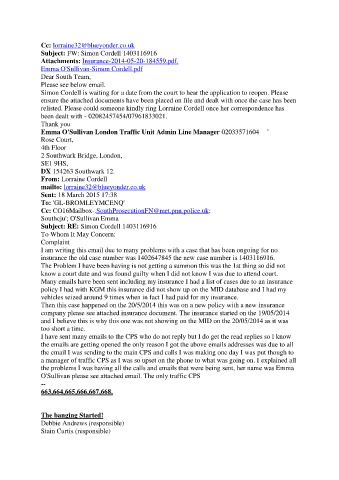 Many emails have been sent including my insurance I had a list of cases due to an insurance
