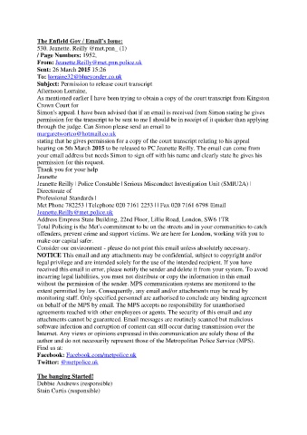 hearing on 5th March 2015 to be released to PC Jeanette Reilly. The email can come from