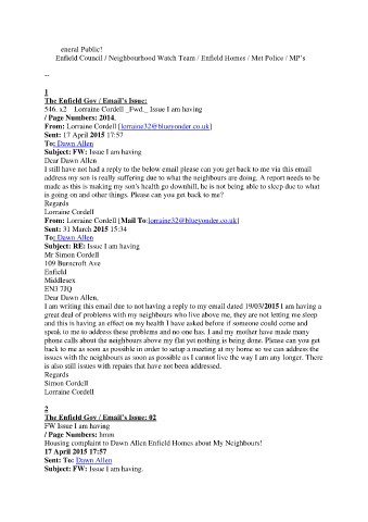 Housing complaint to Dawn Allen Enfield Homes about My Neighbours!