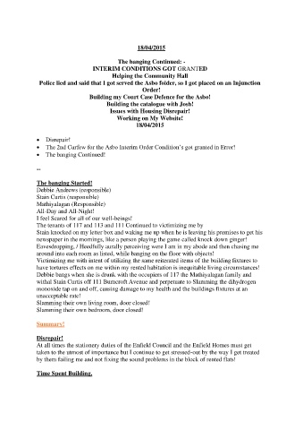 The tenants of 117 and 113 and 111 Continued to victimizing me by