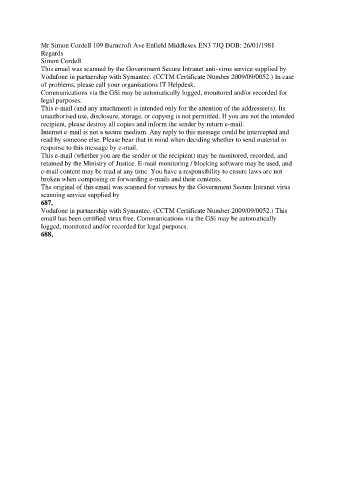 Mr Simon Cordell 109 Burncroft Ave Enfield Middlesex EN3 7JQ DOB: 26/01/1981