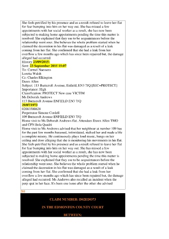 Home visit to Ms Andrews advised that her neighbour at number 109 has