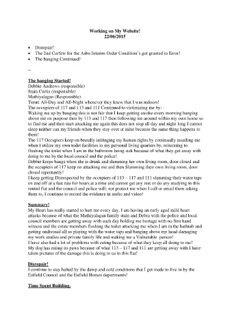 The occupiers of 117 and 113 and 111 Continued to victimizing me by: -