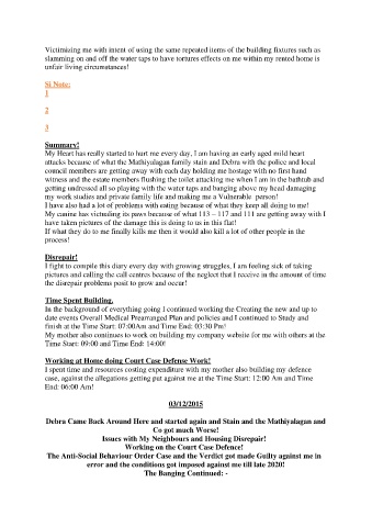 slamming on and off the water taps to have tortures effects on me within my rented home is