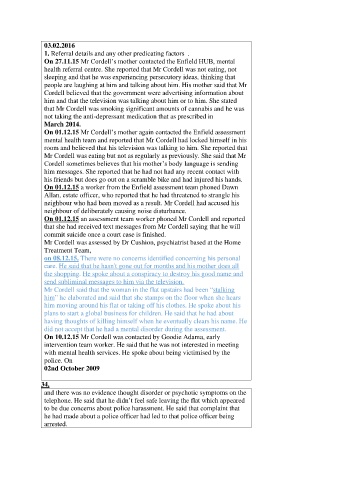 On 27.11.15 Mr Cordell’s mother contacted the Enfield HUB, mental