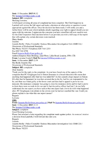 Please find attached a letter regarding the complaint made against police. As soon as I receive