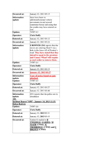Incident Report 74507 - January 14, 2013 11:15-