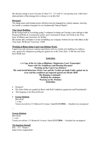 My dog has eating its paws because of what 113 – 117 and 111 are getting away with I have