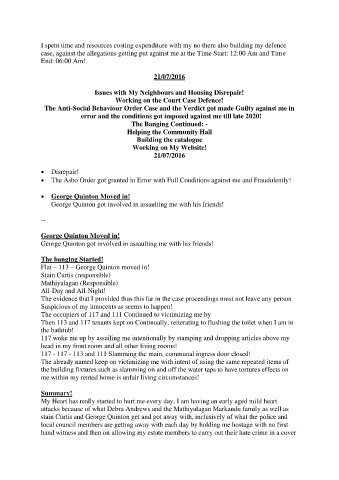 I spent time and resources costing expenditure with my no there also building my defence