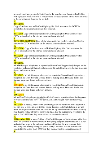Mr Mathiyalagan telephoned to report that Simon Cordell aggressively banged on his