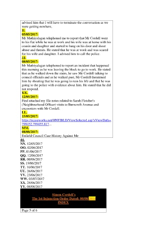 Mr Mathiyalagan telephoned me to report that Mr Cordell went