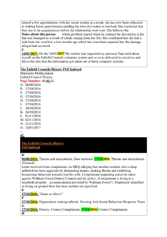 against Waltham Forest District Council and the police. (Complainant is living in a