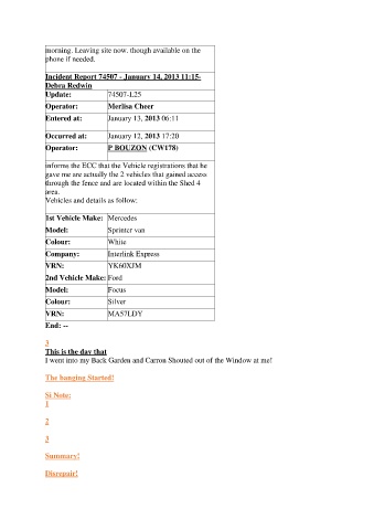 I went into my Back Garden and Carron Shouted out of the Window at me!