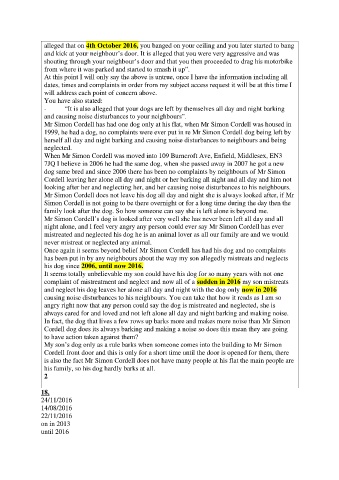 - “It is also alleged that your dogs are left by themselves all day and night barking