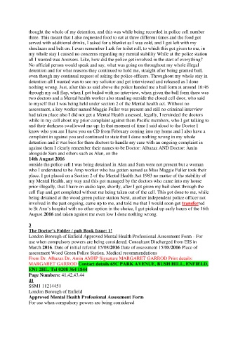 had taken place also I did not get a Mental Health assessed, legally, I reminded the doctors