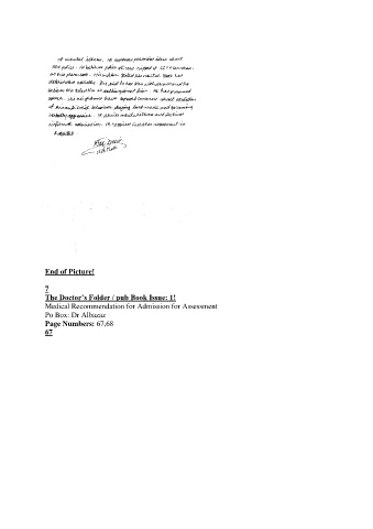 End of Picture! 7 The Doctor’s Folder / pub Book Issue: 1! Medical Recommendation for Admission for Assessment Po Box: Dr Albazaz Page Numbers: 67,68 67