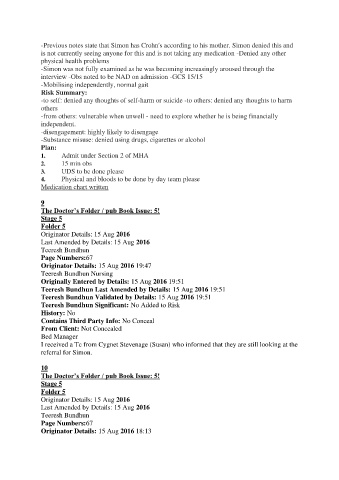 -Previous notes state that Simon has Crohn's according to his mother. Simon denied this and