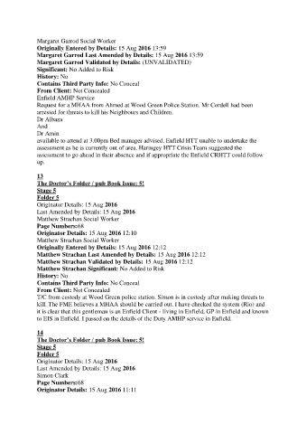Request for a MHAA from Ahmed at Wood Green Police Station. Mr Cordell had been