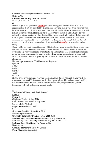 He is a 35-year-old gentleman transferred from Woodgreen Police Station to HAW at