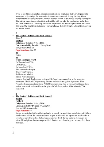 explained that the consultant Dr Cranitch would like him to be started on 5mg olanzapine.