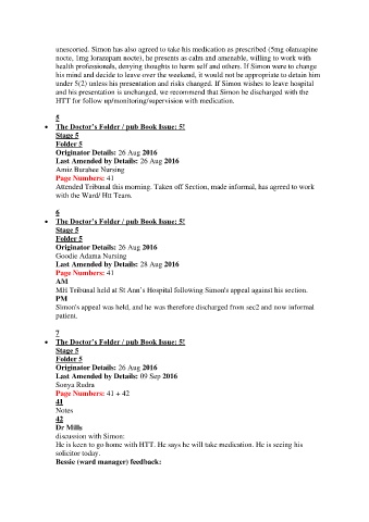 unescorted. Simon has also agreed to take his medication as prescribed (5mg olanzapine