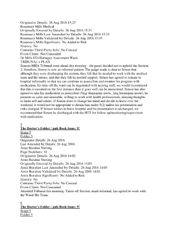 Attended Tribunal this morning. Taken off Section, made informal, has agreed to work with