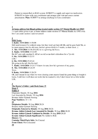 presentation. Plan: ECRHTT to arrange discharge to Care coordinator.