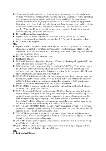 5.1 Mr Cordell has received previous diagnoses of Unspecified nonorganic psychosis F29 in