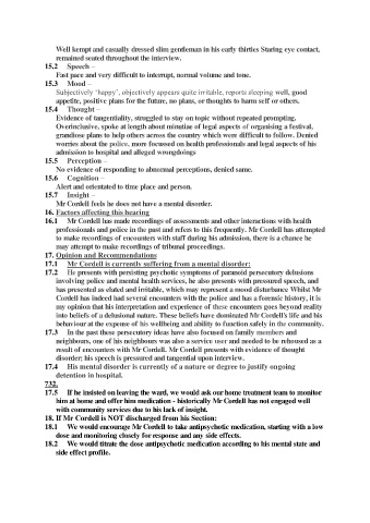 17.1 Mr Cordell is currently suffering from a mental disorder: