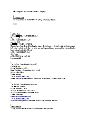 To my solicitor on the 04/09/2016 asking what had got done.