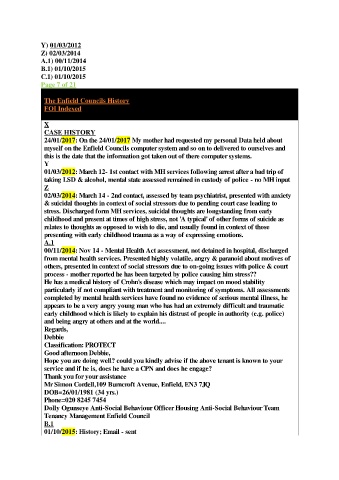 24/01/2017: On the 24/01/2017 My mother had requested my personal Data held about