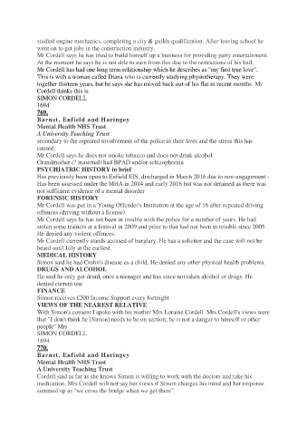 With Simon's consent I spoke with his mother Mrs Loraine Cordell. Mrs Cordell's views were