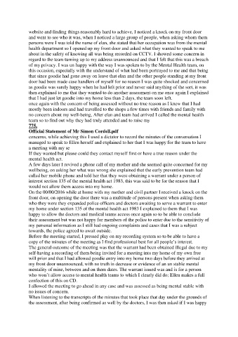 who won’t allow access to mental health teams to which I clearly did do; Ellen makes a full