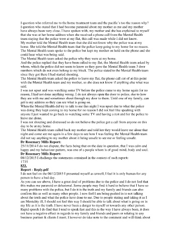 home. She told the Mental Health team that the police keep going to my home for no reason.