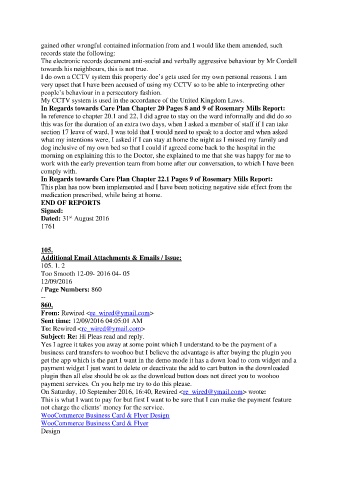 In Regards towards Care Plan Chapter 22.1 Pages 9 of Rosemary Mills Report: