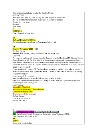 DD: Stain Curtis Council History / A: Complaint Made/ Address of 111 /